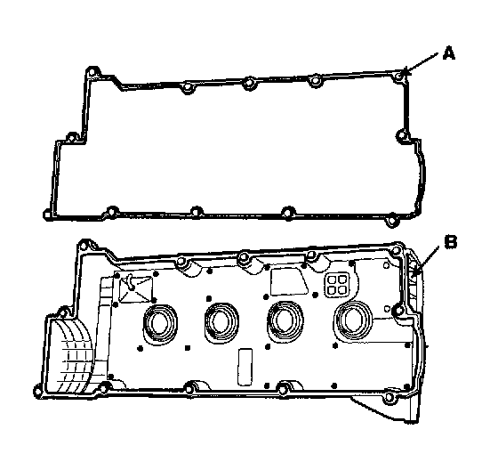 1. Install the cylinder head cover gasket (A) in the groove of the cylinder head cover (B).