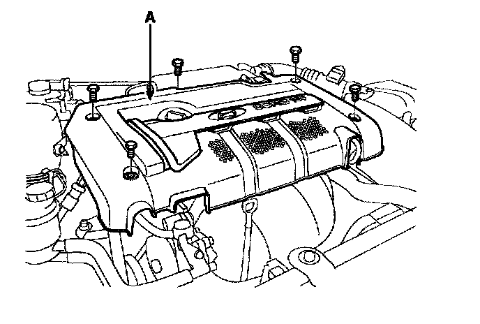 3. Install the cylinder head cover (A) with the 12 bolts (B). Uniformly tighten the bolts in several passes.