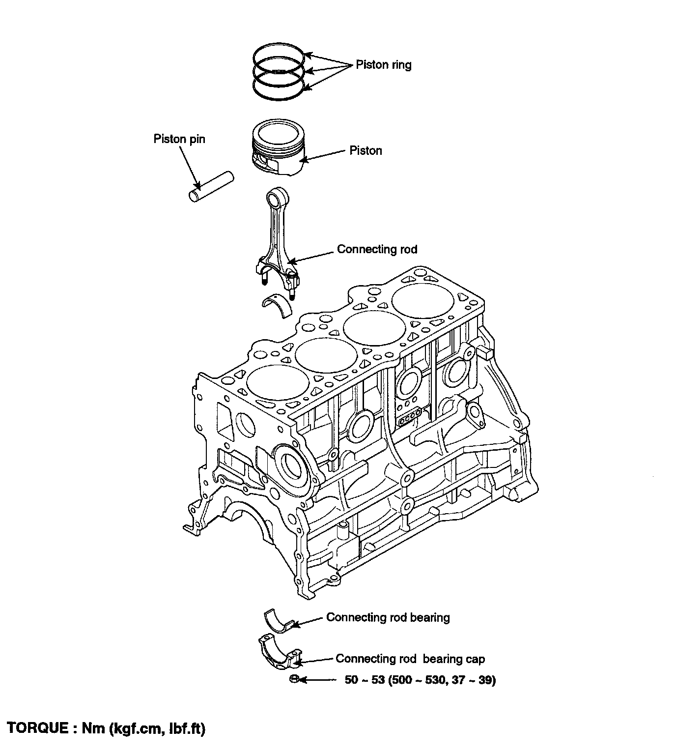 Tightening torque 50 - 53 Nm (500 - 530 kgf-cm, 36.9 - 39 ft. lbs.)