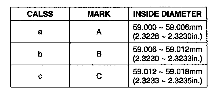 6. Check the cylinder bore size code on the cylinder block bottom face.