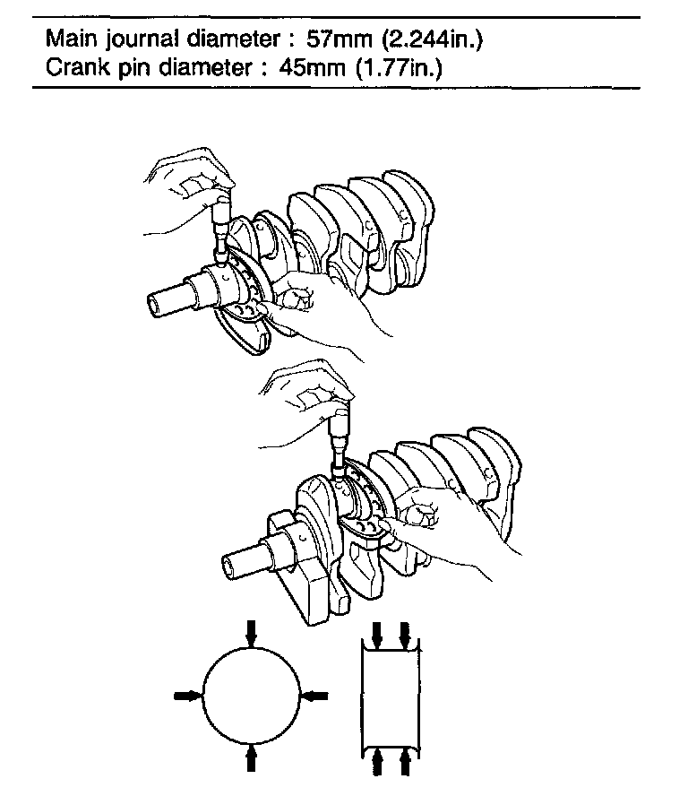 Using a micrometer, measure the diameter of each main journal and crank pin.