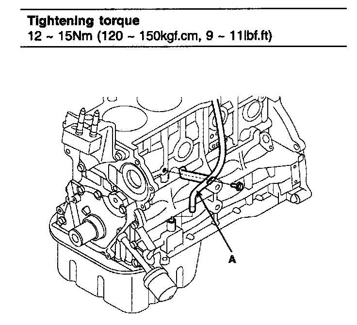 3. Install the oil level gauge assembly (A) with the bolt.