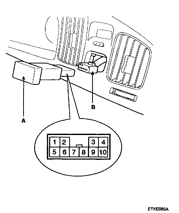 2. Remove the hazard lamp switch (A) from the instrument facia panel and disconnect the 10 P connector (B).