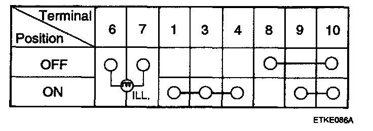 3. Operate the switch and check for continuity between terminals with an ohmmeter.