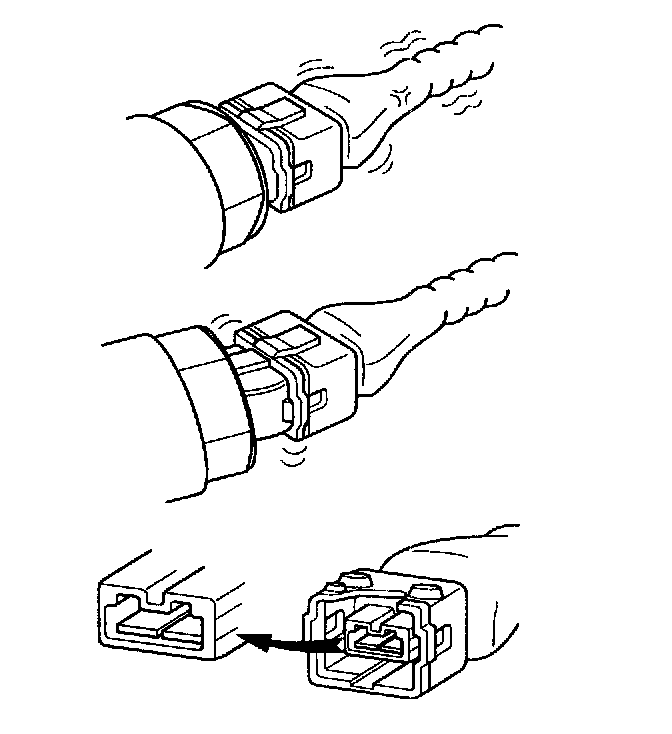 Lightly shake the connector and wiring harness vertically and then horizontally.