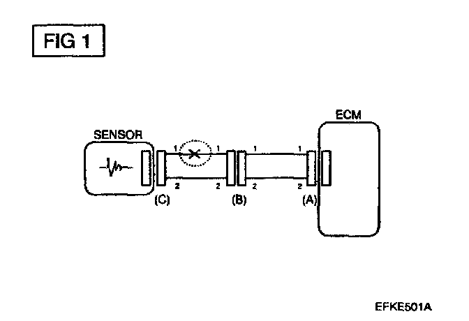 If an open circuit occurs (as seen in [FIG. 1]), it can be found by performing Step 2 (Continuity Check Method) or Step 3 (Voltage Check Method) as shown above.