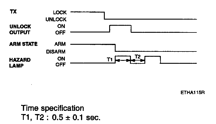 - Pressing the unlock button on the transmitter(TX) key. The hazard lamps shall be flashed twice for 1 sec period (of cycle), 50% duty rate.