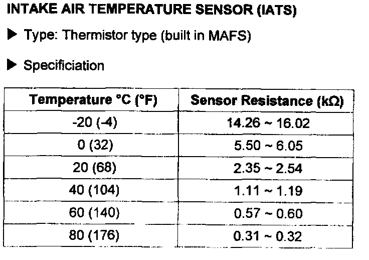 Air Temperature Sensor ( Ambient / Intake ): Specifications
