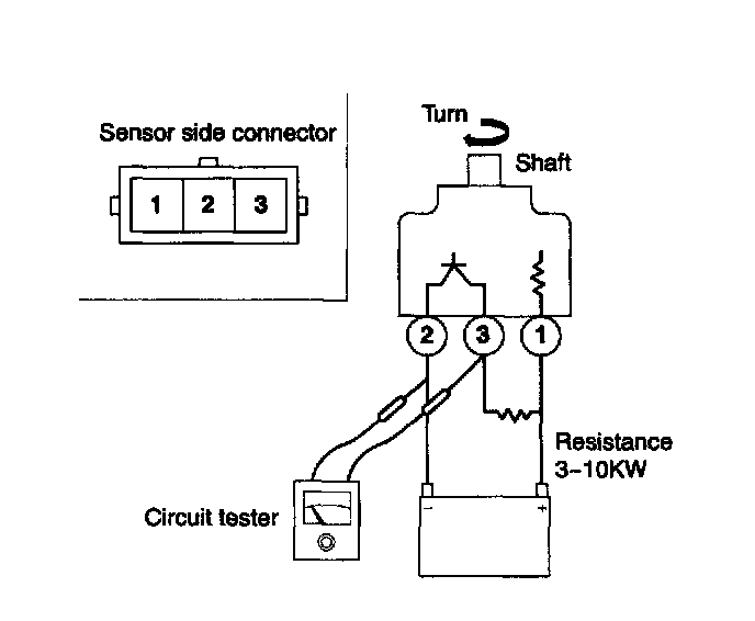 1. Remove the vehicle speed sensor and connect a 3 - 10 k Ohms resistance as illustrated.