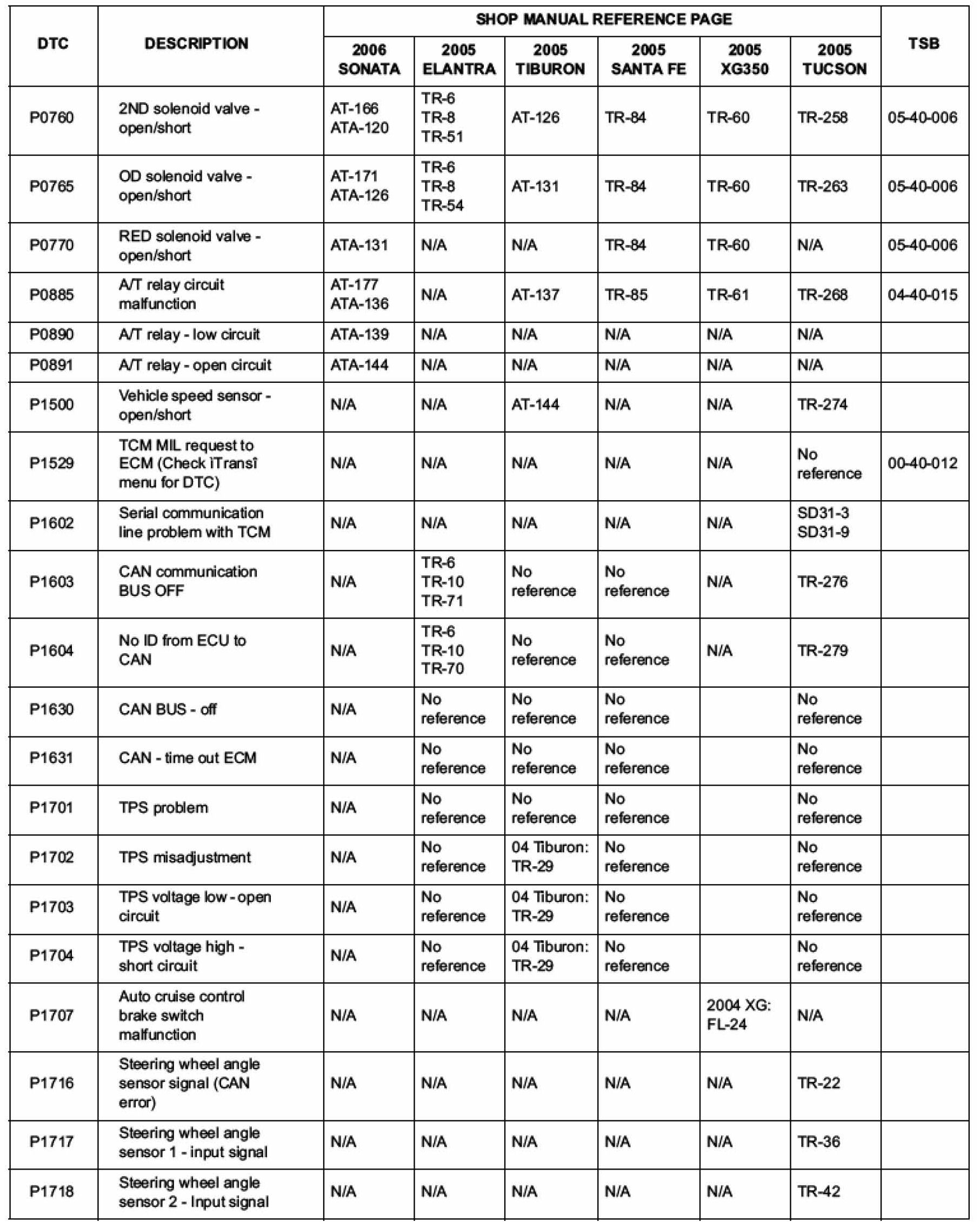 AUTOMATIC TRANSAXLE DIAGNOSTIC TROUBLE CODES LISTMODEL:
