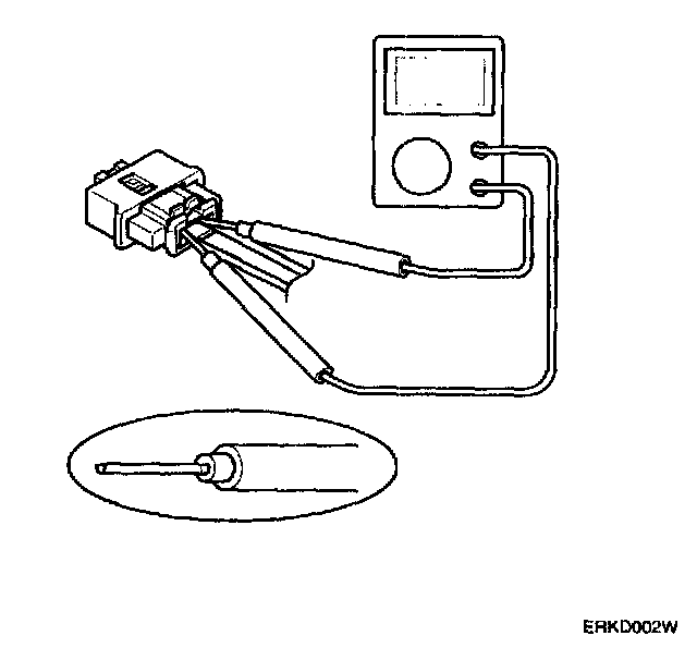 - When using electrical test equipment, insert the probe of the tester into the wire side of the connector. Do not insert the probe of the tester into the terminal side of the connector, and do not tamper with the connector.