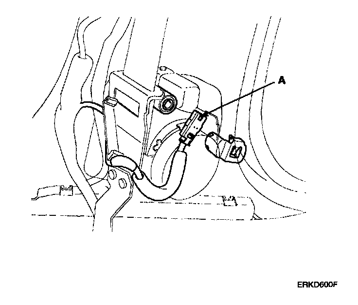 8. Disconnect the belt pretensioner connector (A).