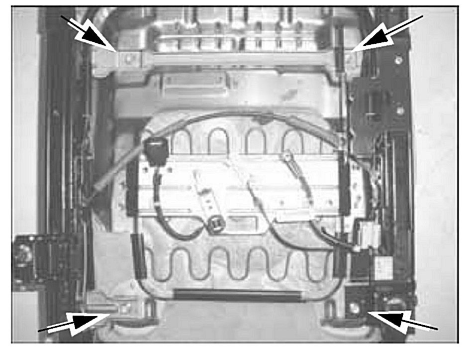4. Remove the 4 nuts holding the passenger seat cushion assembly to the seat frame.