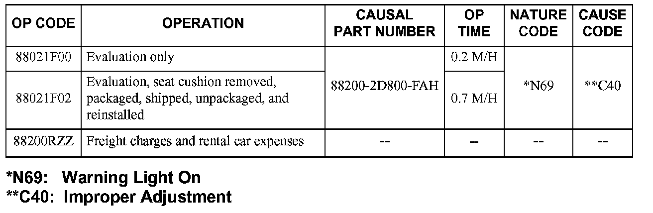 2. Make an appointment when customer can bring both the car and the passenger who has experienced the "PASSENGER AIR BAG OFF" indicator light condition.