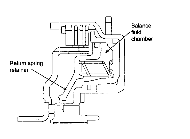 However, fluid in the balance fluid chamber (the space between the piston and return spring retainer) is also subjected to centrifugal force.