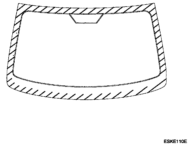 3. If the old windshield is to be reinstalled, use a putty knife to scrape off all of the old adhesive, the fastener, the rubber dam, and the dashboard seal from the windshield. Clean the shaded portion of the windshield with alcohol where new adhesive is to be applied. Make sure the bonding surface is kept free of water, oil and grease.