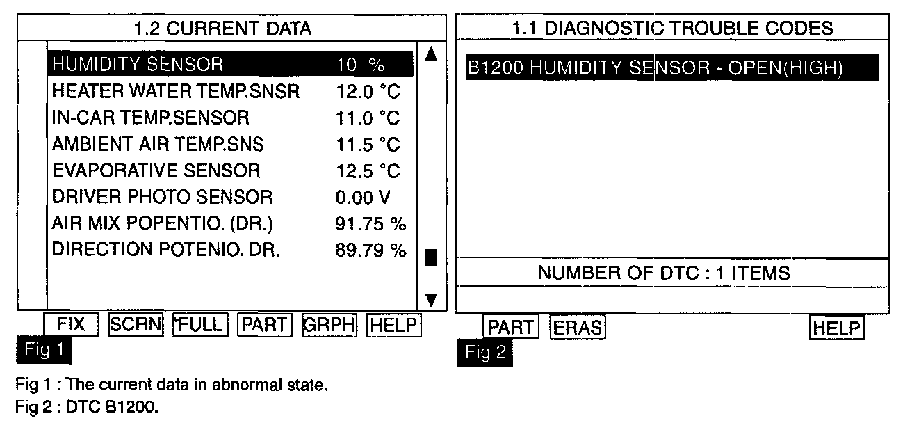 4. Is the DTC B1200 present and is parameter of "Humidity Sensor" fixed?