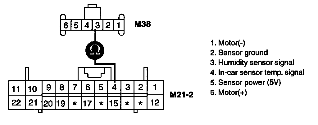 3. Measure resistance between terminal "3" of Humidity Sensor and terminal "4" of Heater & A/C controller.