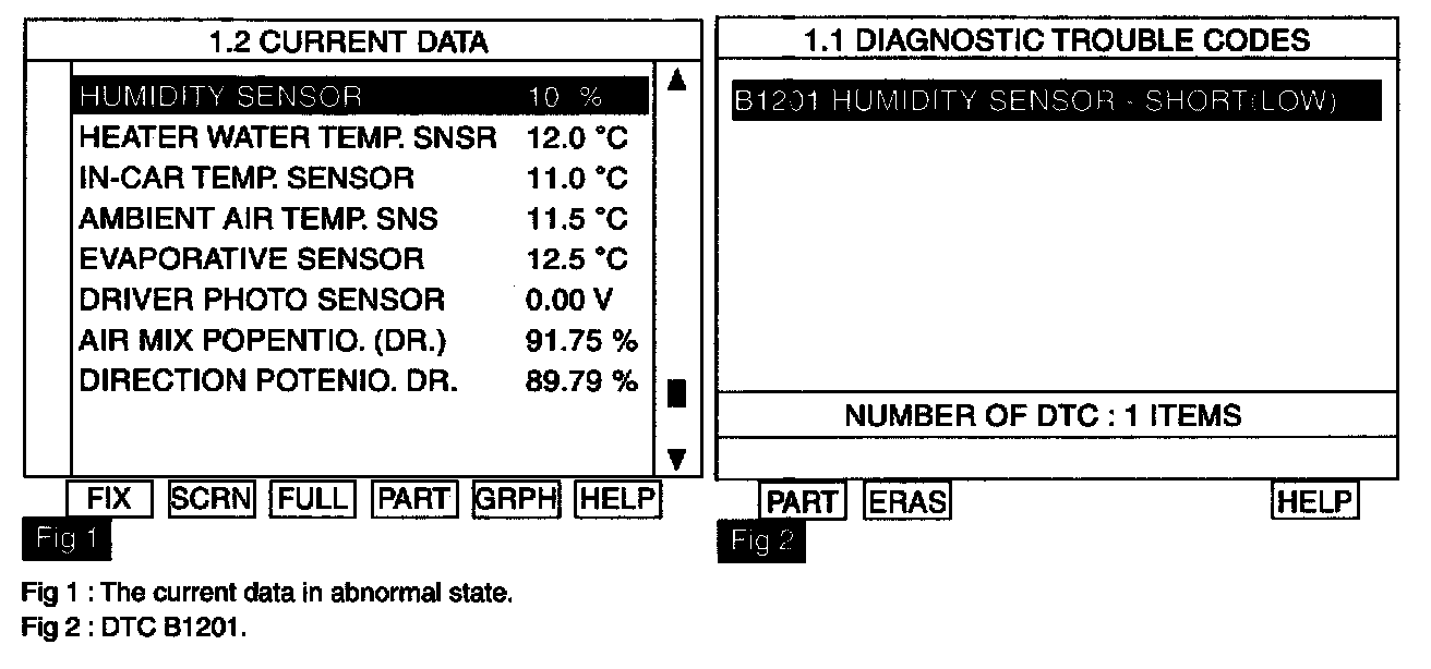 4. Is the DTC B1201 present and is parameter of "Humidity Sensor" fixed?