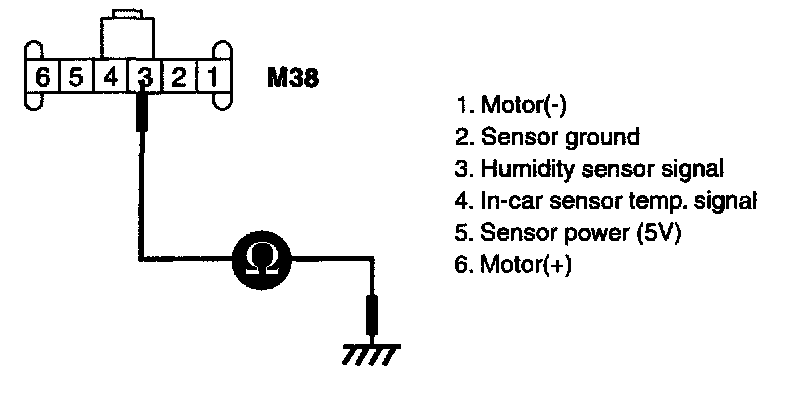 3. Measure resistance between terminal "3" of Humidity Sensor and chassis ground.