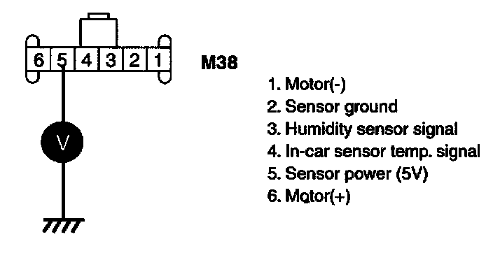 3. Measure voltage value between terminal "5" of Humidity Sensor and chassis ground.