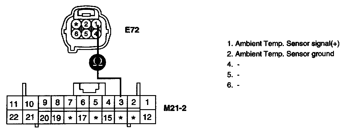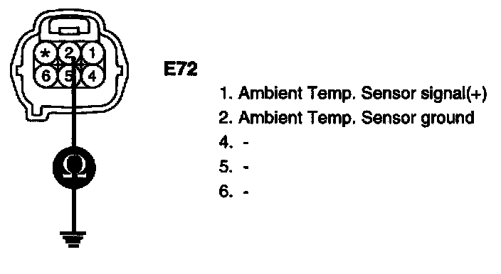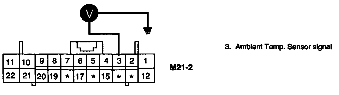 3. Measure resistance between terminal "2" of Ambient Temp. Sensor and chassis ground.