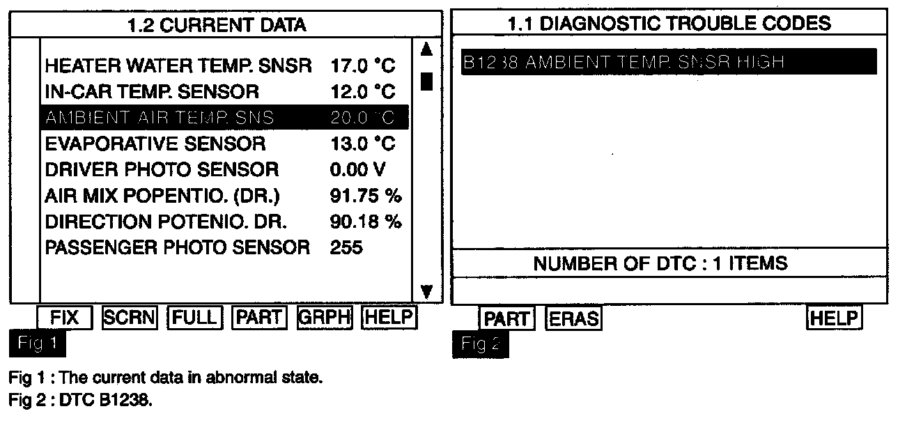 4. Is the DTC B1238 present and is parameter of "Ambient Temp. Sensor" fixed?