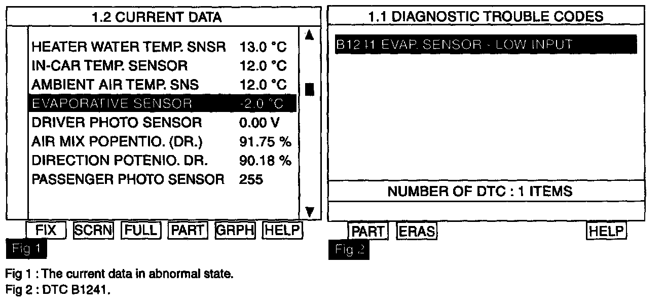 DTC B1241 EVAPORATOR TEMPERATURE SENSOR SHORT (LOW)Component Location: