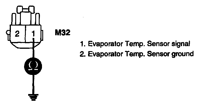 3. Measure resistance between terminal "1" of Evaporator Temp. Sensor and chassis ground.