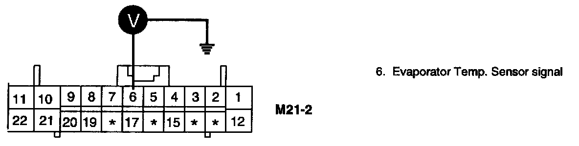 3. Measure voltage between terminal "6" of Heater & A/C controller and chassis ground.