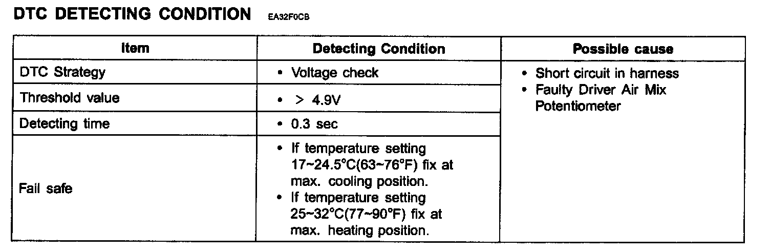 * Parameter of "Driver Air Mix Potentiometer" wilt be fixed at 100% (or any value above 90%), or 0% (or any value below 10%), if there is any fault in Driver Air Mix Potentiometer.