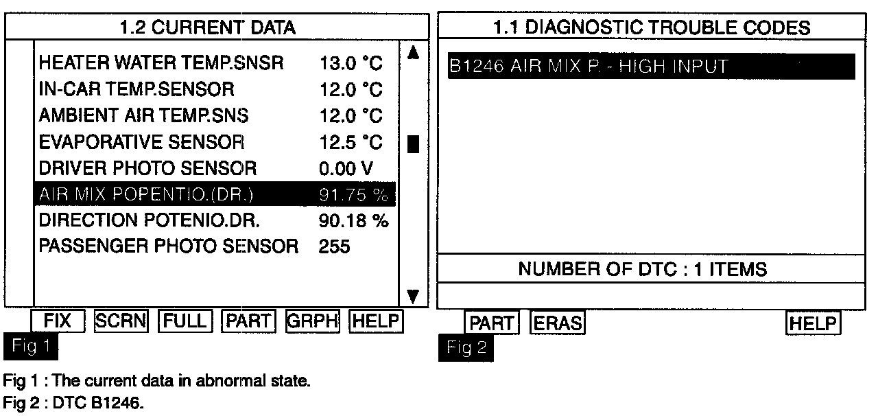 4. Is the DTC B1246 present and is parameter of "Driver Air Mix Potentiometer" fixed?