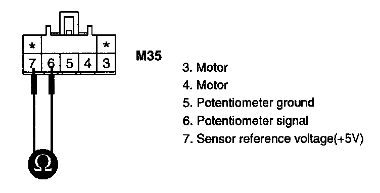 3. Measure resistance between terminal "6" and "7" of Driver Air Mix Potentiometer.