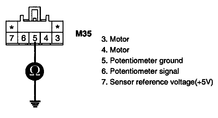 3. Measure resistance between terminal "5" of Driver Air Mix Potentiometer and chassis ground.