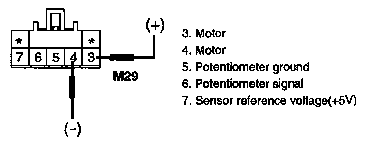 3. Verify that the Mode Actuator operates to the vent mode when connecting 12 V to the terminal "3" and grounding terminal "4".