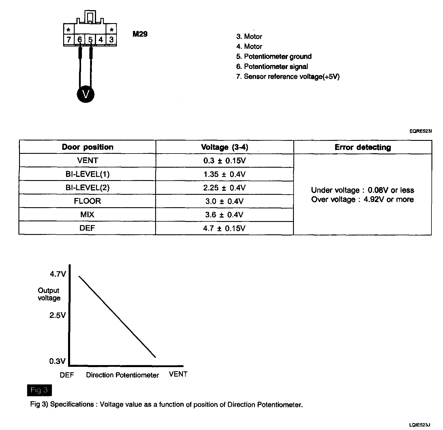 3. Measure voltage between terminal "5" and "6" of Driver Direction Potentiometer as the mode switch is operated.