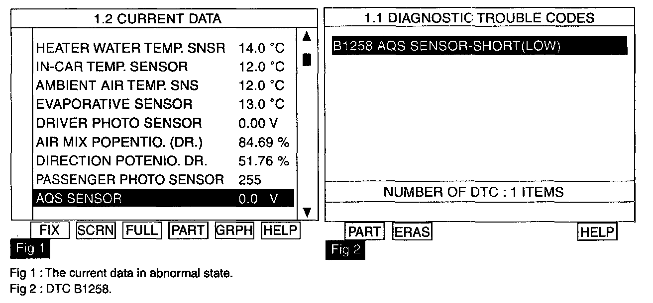 4. Is the DTC B1258 present and is parameter of"AQS SENSOR" fixed?