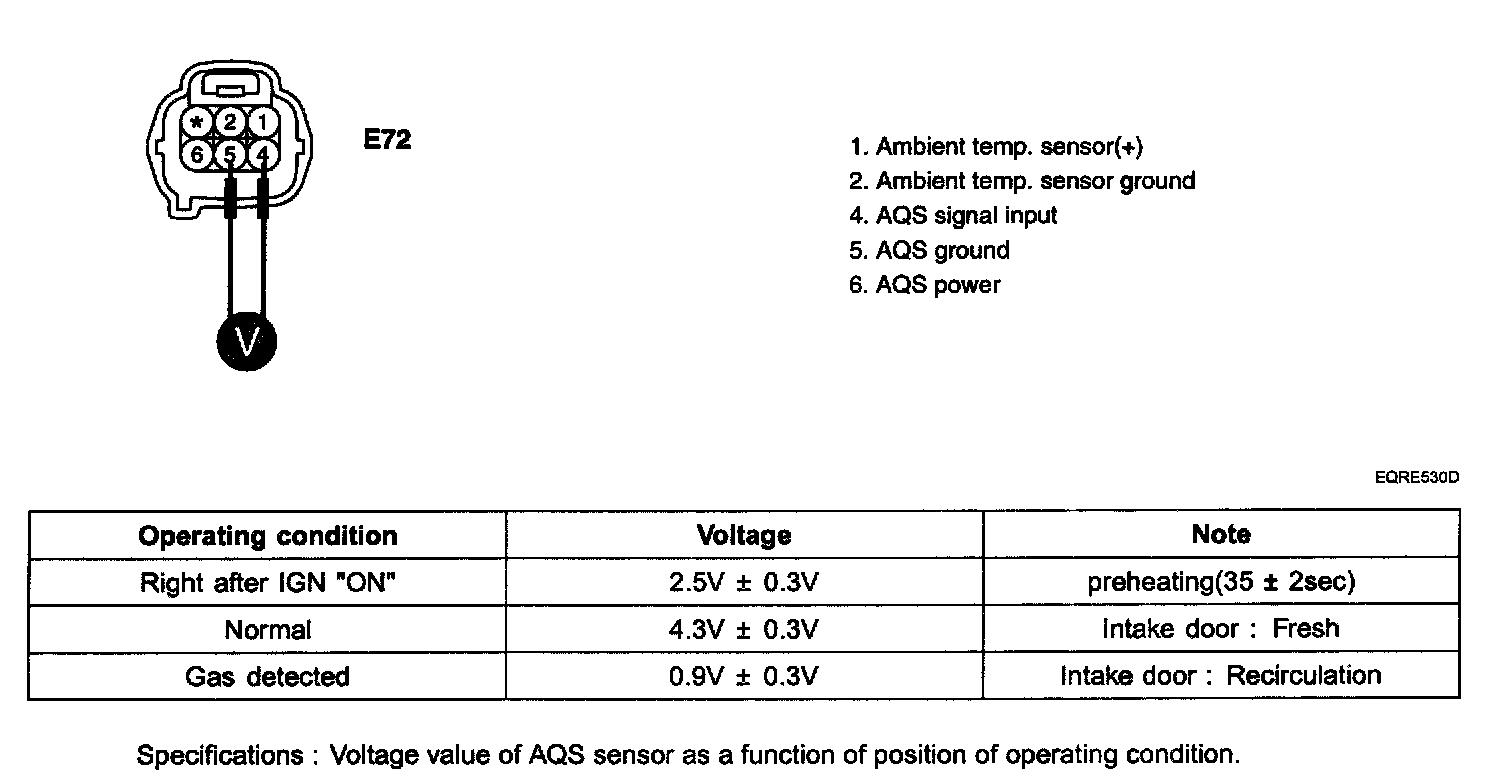 3. Measure voltage between terminal "4" and "5" of AQS sensor.