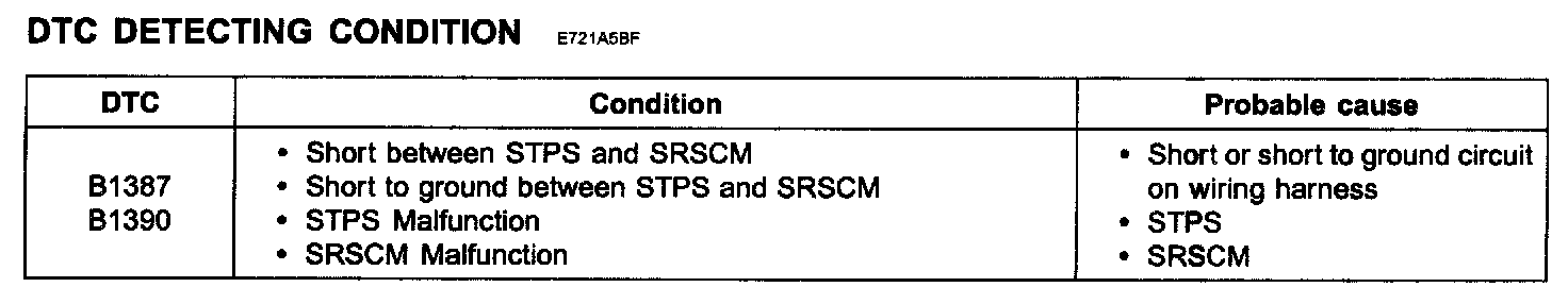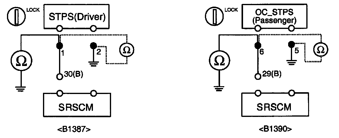 DTC B1387 DRIVER STPS SHORT TO GROUNDDTC B1390 PASSENGER STPS SHORT TO GROUND