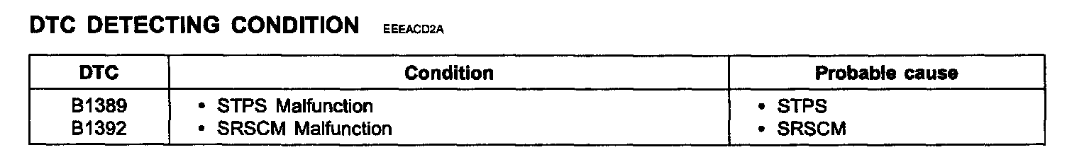 DTC B1389 DRIVER STPS DEFECTDTC B1392 PASSENGER STPS DEFECT