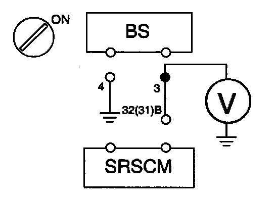 1. Measure current between the terminal 3 of BS and 32(31) of SRSCM harness connector(B).