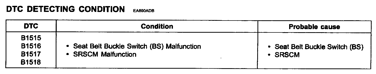 DTC B1515 SEAT BELT BUCKLE SWITCH [DRIVER] DEFECTDTC B1516 SEAT BELT BUCKLE SWITCH [PASSENGER] DEFECT