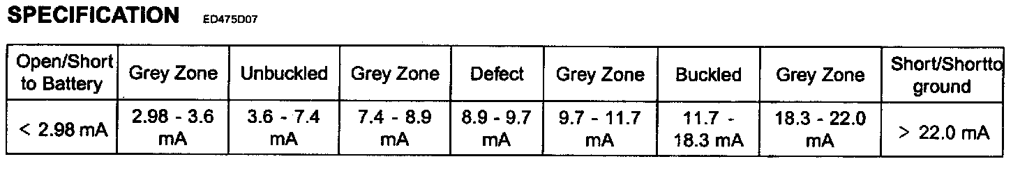 specification(current) :12 - 18 mA (Buckled status), 4 - 7 mA (Unbuckled status)