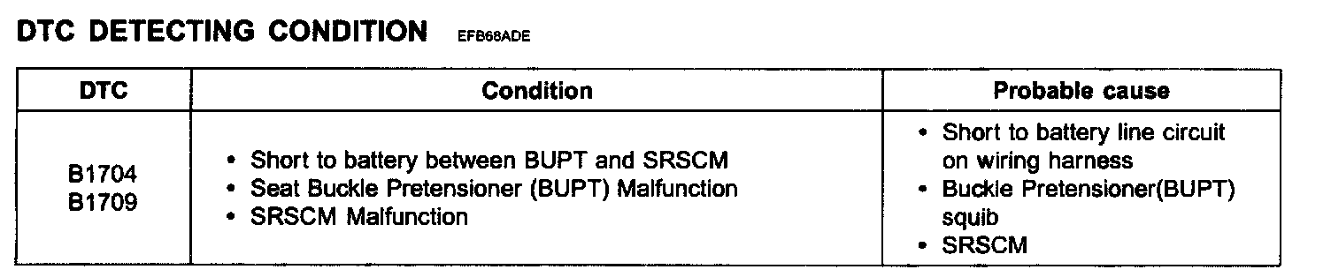 DTC B1704 DRIVER BUCKLE PRETENSIONER SHORT TO BATTERYDTC B1709 PASSENGER BUCKLE PRETENSIONER SHORT TO BATTERY