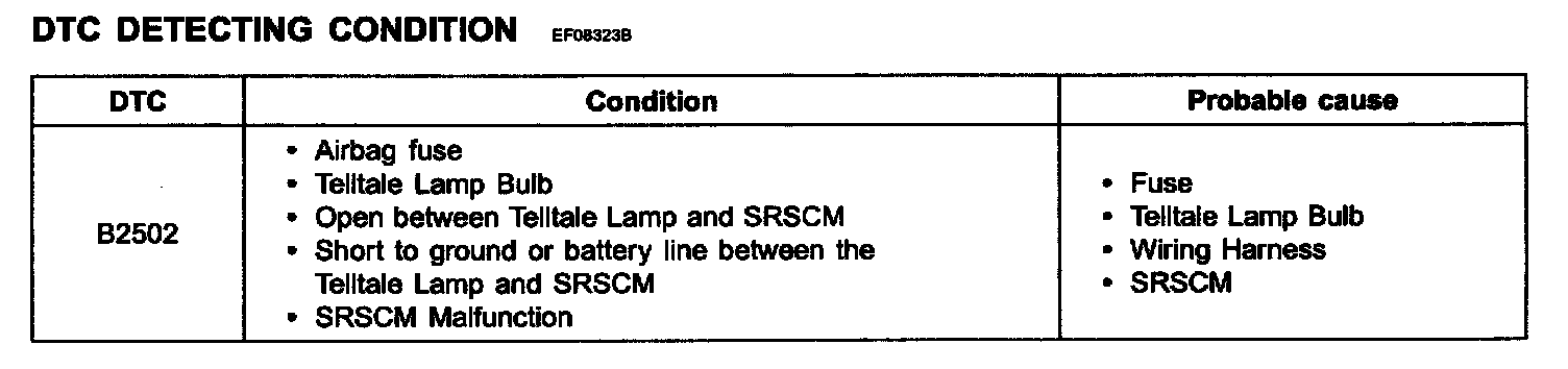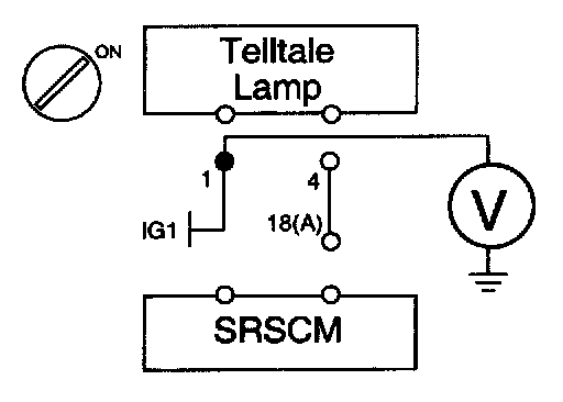 The Telltale Lamp circuit consists of the Telltale Lamp and the SRSCM. SRSCM set the above DTC that the Telltale Lamp failure is detected.