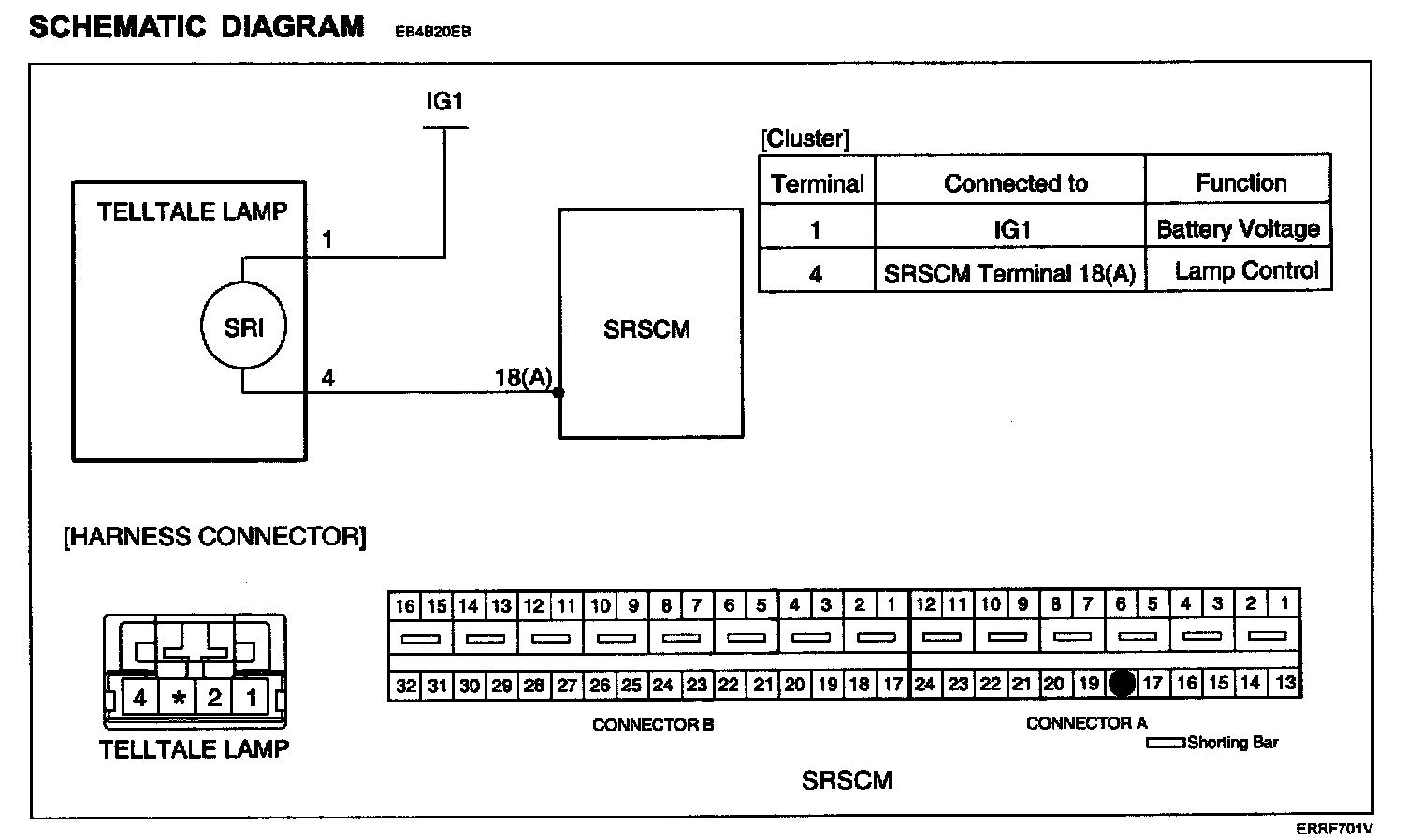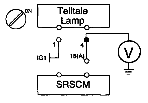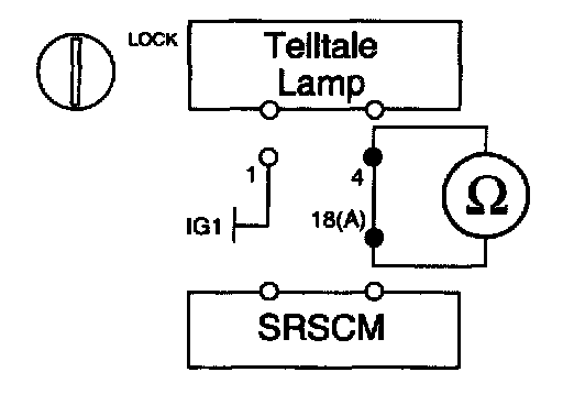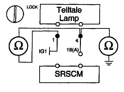 1. Measure resistance between the terminal 4 of the Telltale Lamp harness connector and the terminal 18(A) of SRSCM harness connector.
