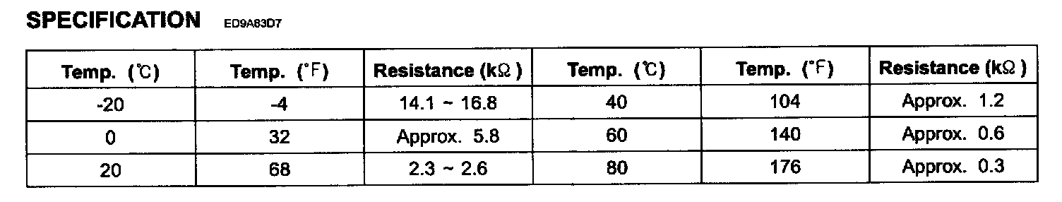 The Engine Coolant Temperature Sensor (ECTS) is located in the engine coolant passage of the cylinder head for detecting the engine coolant temperature. The ECTS uses a thermistor whose resistance changes with the temperature. The electrical resistance of the ECTS decreases as the temperature increases, and increases as the temperature decreases. The reference 5 V in the ECM is supplied to the ECTS via a resistor in the ECM. That is, the resistor in the ECM and the thermistor in the ECTS are connected in series. When the resistance value of the thermistor in the ECTS changes according to the engine coolant temperature, the output voltage also changes.During cold engine operation the ECM increases the fuel injection duration and controls the ignition timing using the information of engine coolant temperature to avoid engine stalling and improve driveablity.