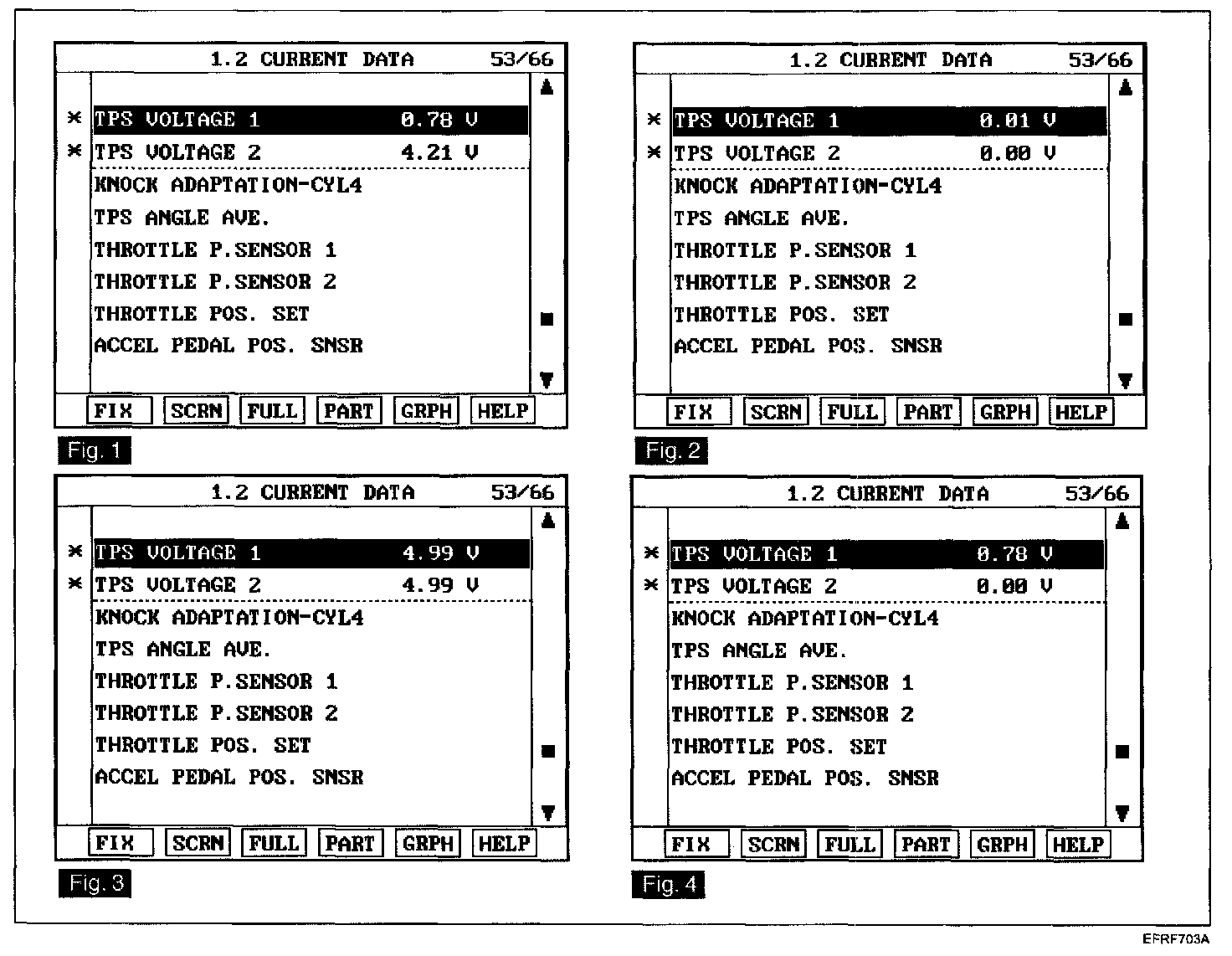 1. After engine starting, connect Scantool and monitor the "TPS1" & "TPS2" parameters on the Scantool data list.