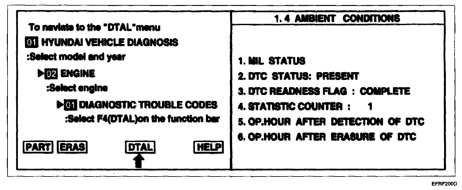2. Press F4(DTAL) to select DTC information from the DTCs menu