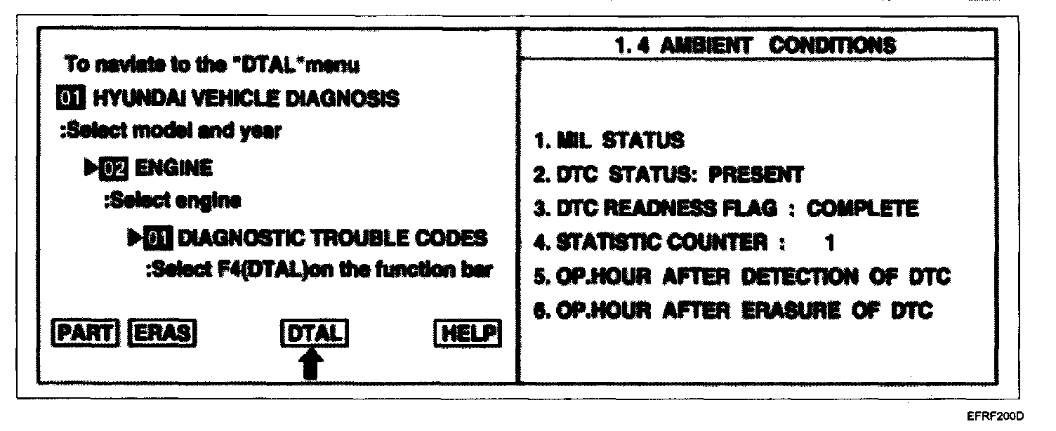 2. Press F4(DTAL) to select DTC information from the DTCs menu